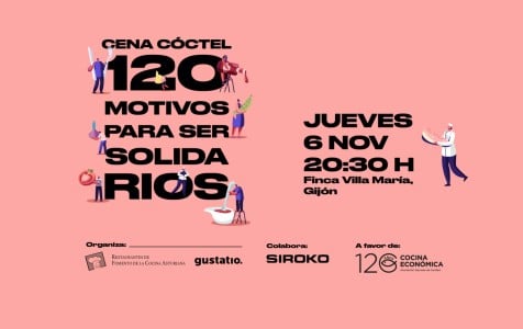 La Asociación de Restaurantes Fomento de la Cocina Asturiana y la empresa de eventos Gustatio organizan la cena cóctel “120 motivos para ser solidarios”, a beneficio de la Cocina Económica de Gijón con motivo de su 120 aniversario.