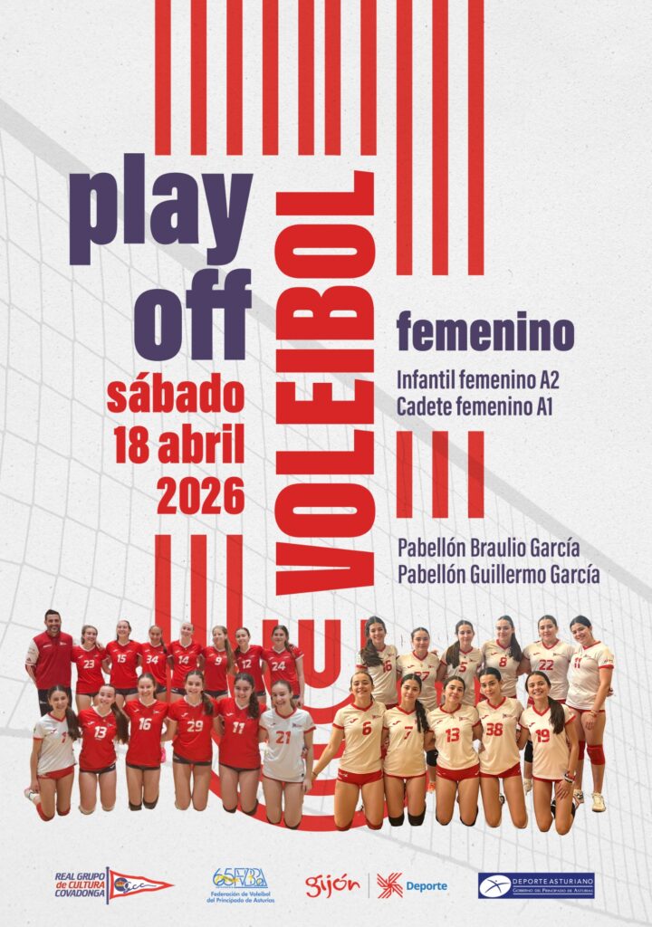 El voleibol femenino del Club vivirá una intensa jornada competitiva con la disputa de los play off en las categorías Cadete Femenino A1 e Infantil Femenino A2, que se celebrarán el próximo 18 de abril en Gijón.