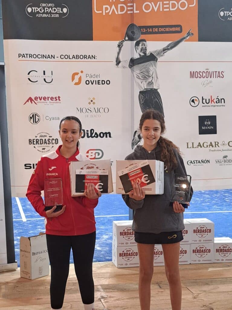 Las jugadoras de la sección de pádel del RGCC Covadonga continúan cosechando excelentes resultados en las competiciones regionales. Recientemente, Carmen López, jugadora de la escuela del club, junto a su compañera Cristina Sánchez, se proclamaron campeonas de 3ª categoría absoluta en el Máster del Circuito TPG 2025, celebrado en las instalaciones de Pádel Oviedo.