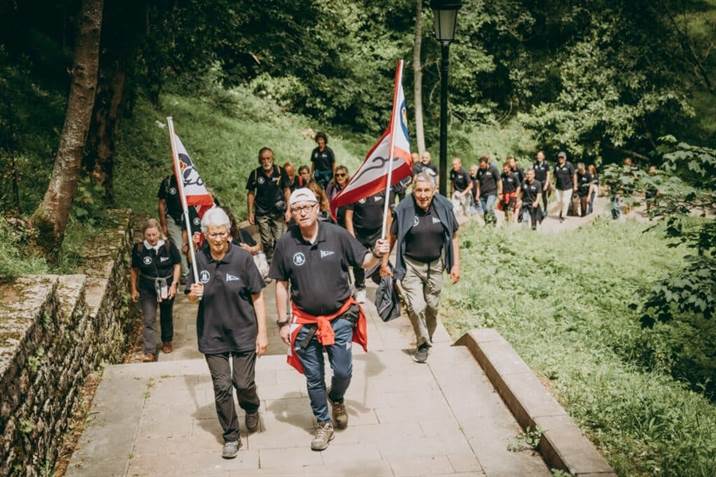 Al día siguiente, el domingo, con fuerzas renovadas, y con el resto de Grupistas llegando directos desde Gijón, los participantes pudieron disfrutar de una caminata muy agradable. El alcalde de Cangas, José Manuel González, les deseó una buena jornada, mientras actuaba la sección de Coros y Danzas del club, para disfrute no solo de los caminantes, pero de todos los curiosos que pasaban la mañana en la plaza de Cangas de Onís.