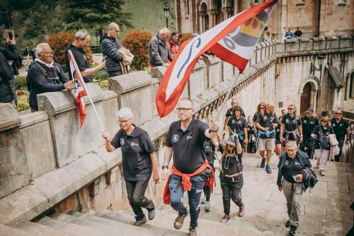 Desde allí pusieron marcha hacia la Basílica de Covadonga, con el recibimiento de la gaita y el tambor, tuvo lugar una misa, oficiada en por el abad, en la que se procedió a una entrega floral en recuerdo de los socios que ya no nos acompañan. Asimismo, las flores presidieron las plegarias a la Virgen dentro de la cueva, siempre acompañadas de la música del Orfeón del Grupo así como por el del Centro Asturiano de Oviedo, que también celebraban en este fin de semana su tradicional marcha a pie.
