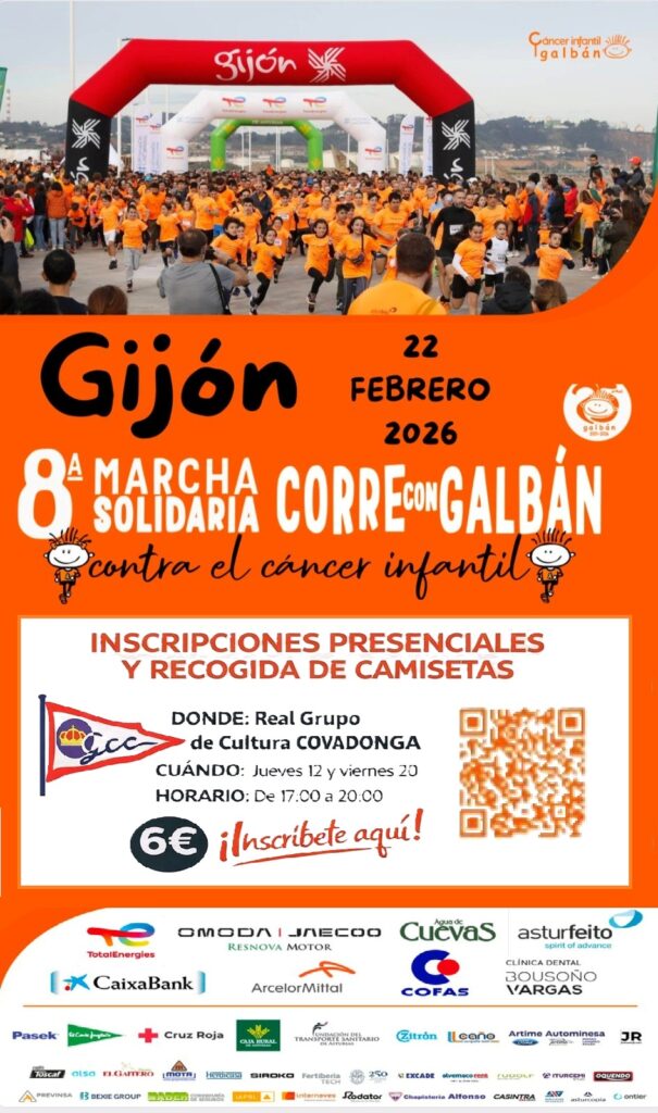 El Real Grupo de Cultura Covadonga informa que la Asociación Galbán estará presente en la sede El Grupo para realizar inscripciones presenciales de cara a la 8.ª Marcha Solidaria “Corre con Galbán”, que se celebrará el próximo 22 de febrero de 2026.